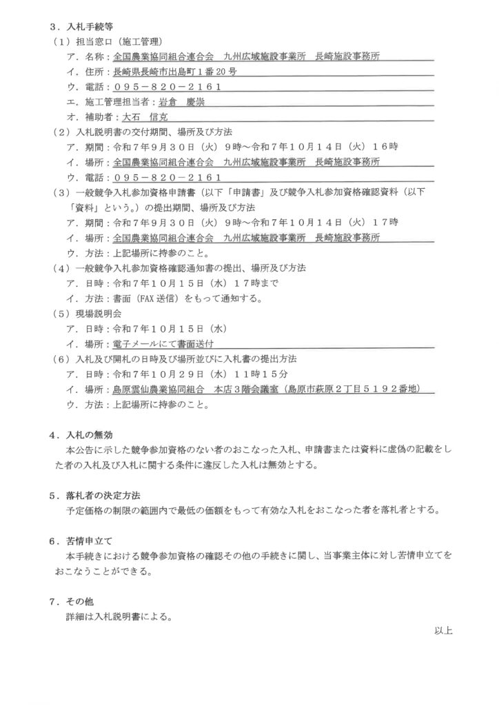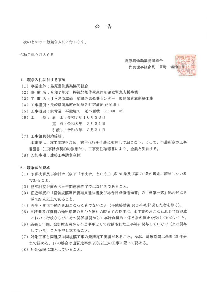 【公告】加津佐馬鈴薯センター 馬鈴薯倉庫新築工事