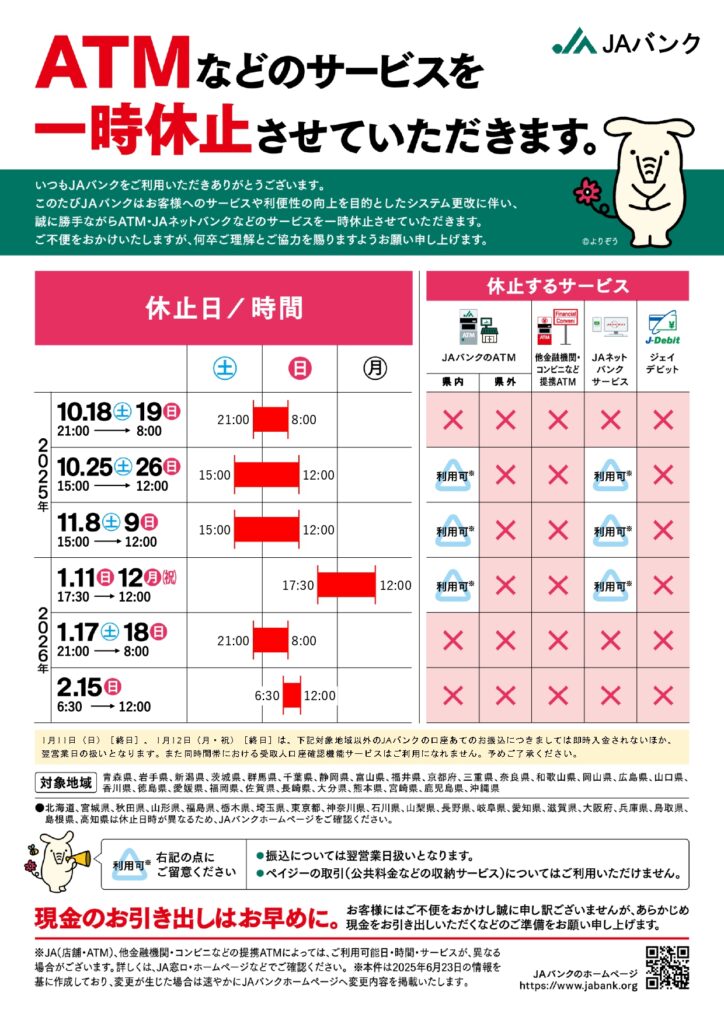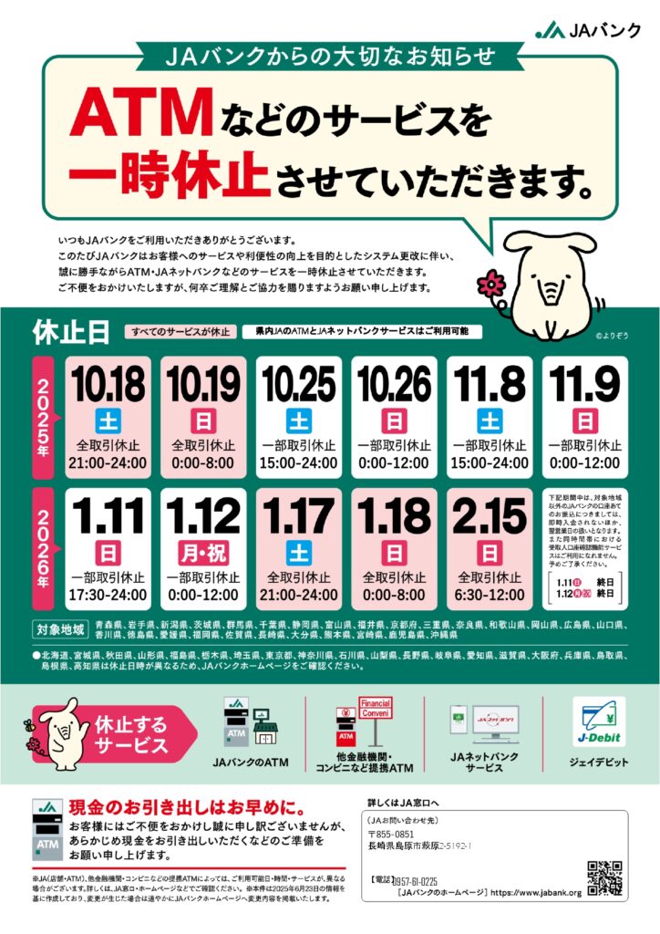 【お知らせ】長崎県内ATM・ネットバンキング一時休止期間のお知らせ