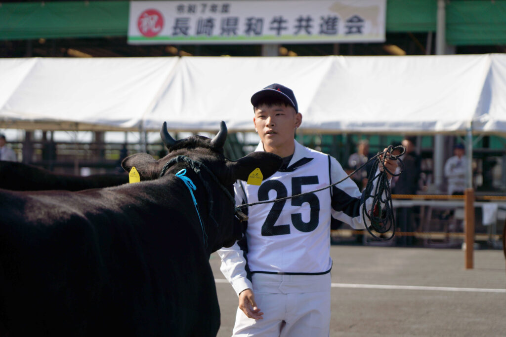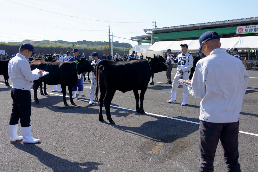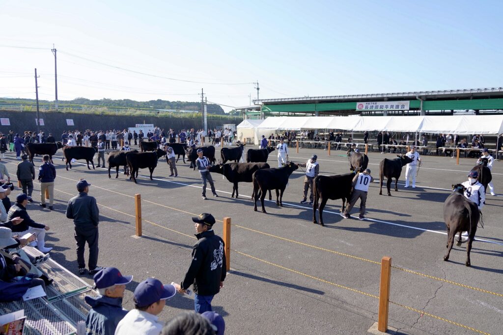 全国和牛能力共進会「長崎和牛」推進協議会はこのほど、長崎県和牛共進会を開催しました。県内各地区の予選を勝ち抜いた40頭と農業大学校・農業高校から5頭を合わせた、合計45頭が出品されました。当JA管内からは5頭が出品され、南高愛隣会の「にいこ」が第1区(若雌の1)で優等賞3席を受賞しました。