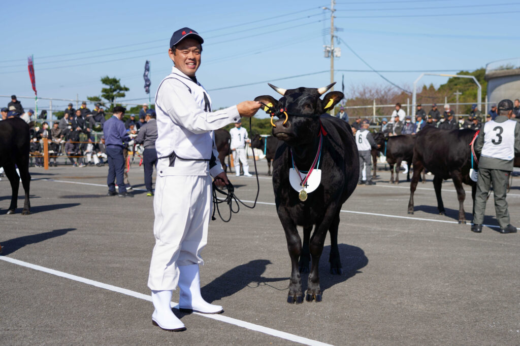 その他の結果は次の通り。 ◇第2区(若雌の2)▽一等賞1席=荒木大作▽二等賞2席=大島司◇第3区(繁殖雌牛)▽二等賞2席=池田卓彌、大久保和仁