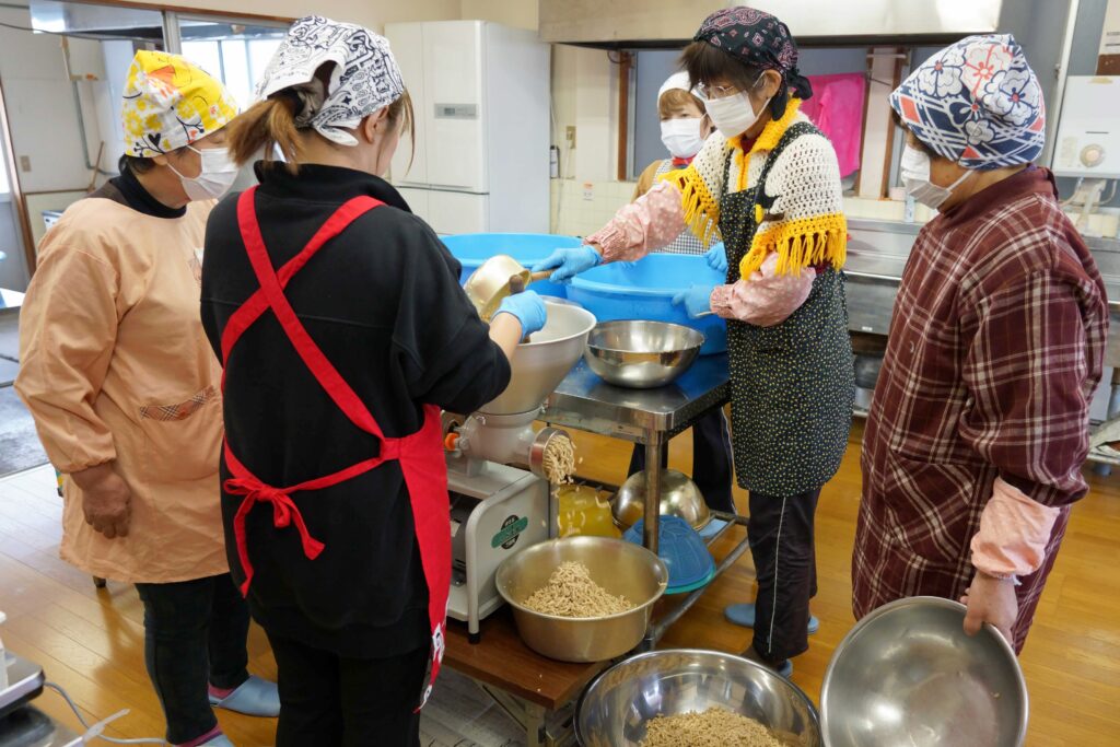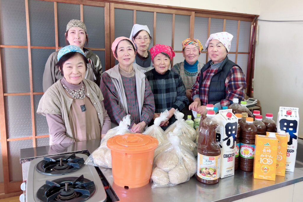 女性部国見支部はこのほど、たれ・みそ作りを行いました。複数回に分けて実施し、多くの部員が参加しました。