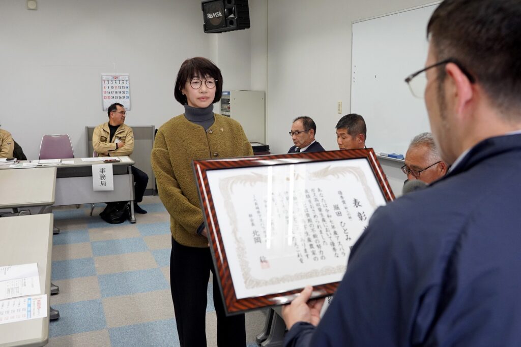 また、県部会で同部会の堀田ひとみさんが新人賞優秀賞を、昇陽倶楽部が総出荷量伸び率の部最優秀賞を受賞したことを報告し、表彰状を授与しました。