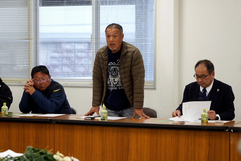 生育状況調査では、管内6か所(口之津・加津佐・南串山・小浜・千々石・愛野)の圃場を巡回し、サンプルを採集して生育状況を確認しました。その後、西部基幹営農センターで開かれた会議では、それぞれの産地状況が報告されたほか、出荷計画について協議しました。